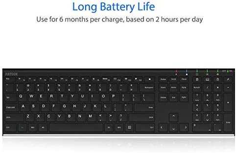 Arteck 2.4G Wireless Keyboard Stainless Steel Ultra Slim Full Size Keyboard