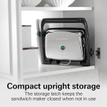 FLOATING LID: This hot sandwich maker features a café-style floating lid that evenly presses any size sandwich.