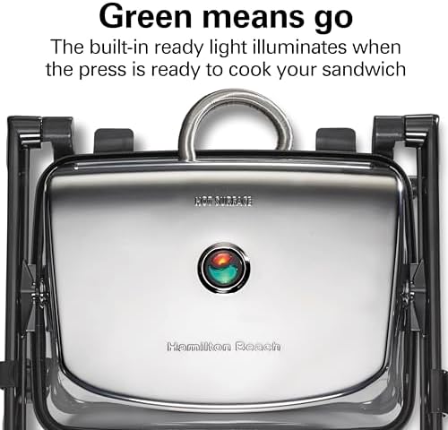 GREEN MEANS GO: For best results, preheat sandwich maker 6 minutes before use. Built-in ready light will turn green when the press is ready to cook your sandwich.