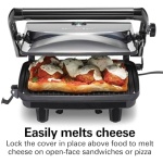 NO NEED TO FLIP: Nonstick top and bottom panini press grids heat and brown the sandwich, giving you warm, crisp results.