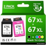 High Yield for HP 67/67XL HP67 Ink Cartridges Black/Color Combo Pack Works