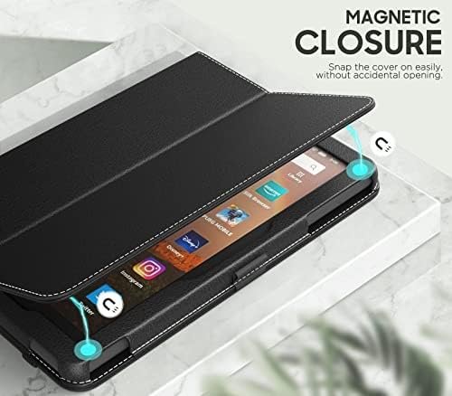 【Auto Wake/Sleep】 – Built-in magnetic strip, automatically wakes or puts your Kindle fire 8 tablet 2020 to sleep when the lid is opened and closed. Protects and extends battery life.