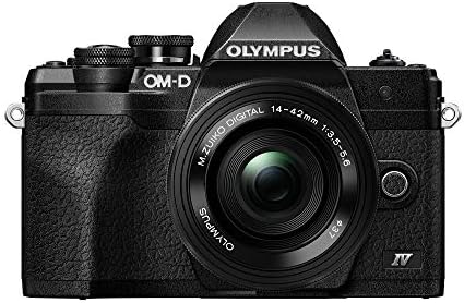 Olympus OM-D E-M10 Mark IV Mirrorless Camera, Black, with 14-42mm EZ Black lens, 5-axis Image Stabilization, 20 MP Sensor, 3-inch Tilting Touchscreen, Easy Shooting Modes, Wi-Fi/Bluetooth, and 4K Video.