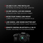 4K v-log L video – 4K 24/30P video capture Plus pre-installed v-log L offers exceptional flexibility in post-production, featuring log characteristics with 12 Stops of dynamic range