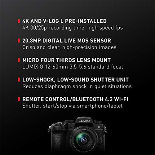 Panasonic LUMIX G95 20. 3 Megapixel Mirrorless Camera, 12-60mm F3. 5-5. 6 Micro Four Thirds Lens, 5-Axis Dual I. S. 2, 4K 24p 30p Video, Pre-Installed V-Log L, 3” Flip-Out Touchscreen – DC-G95MK (Black)
